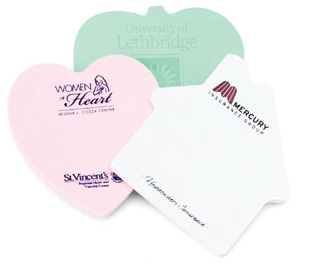 Product Description: Die-cut shaped notes with an ultra repositionable adhesive backing. Your text or logo custom digital printed 4-color process on each sheet. Made in the USA.